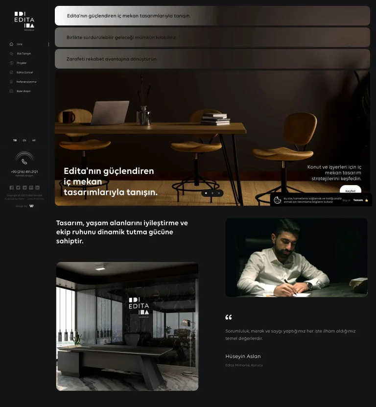 Her müşteri için özel web siteleri oluşturuyoruz, kurumsal kimliğinize uygun tasarımlar geliştiriyoruz. Sizin istekleriniz doğrultusunda özelleştirilebilir ve yönetilebilir web siteleri sunuyoruz. Profesyonel ekibimizle hayalinizdeki web sitesini gerçeğe dönüştürüyoruz. İşte bu, iş dünyasında fark yaratan bir adım!